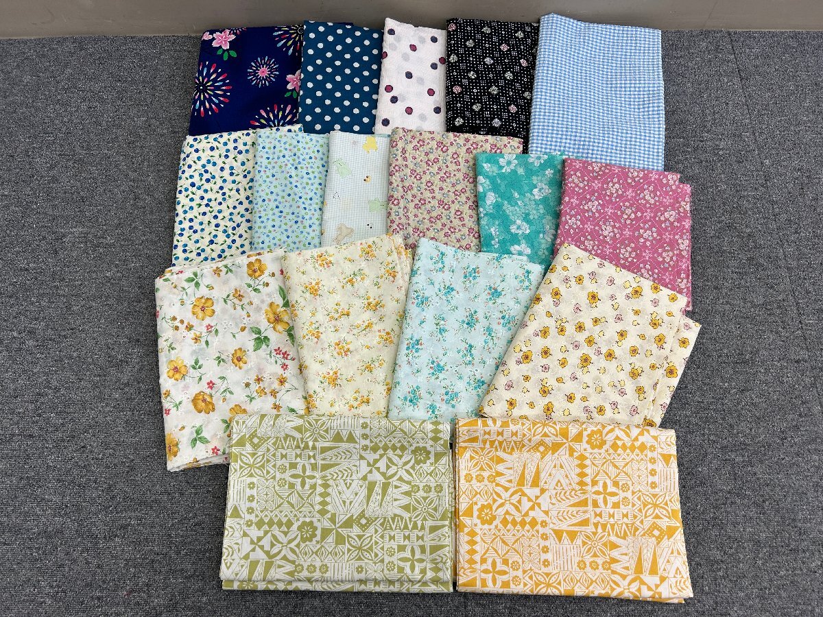 > 【まとめ売り】17点 ハギレ 布 プリント柄 ワッフル サッカー リップル 生地 レース生地 中古品 保管品 現状品 手芸用 ハンドメイド