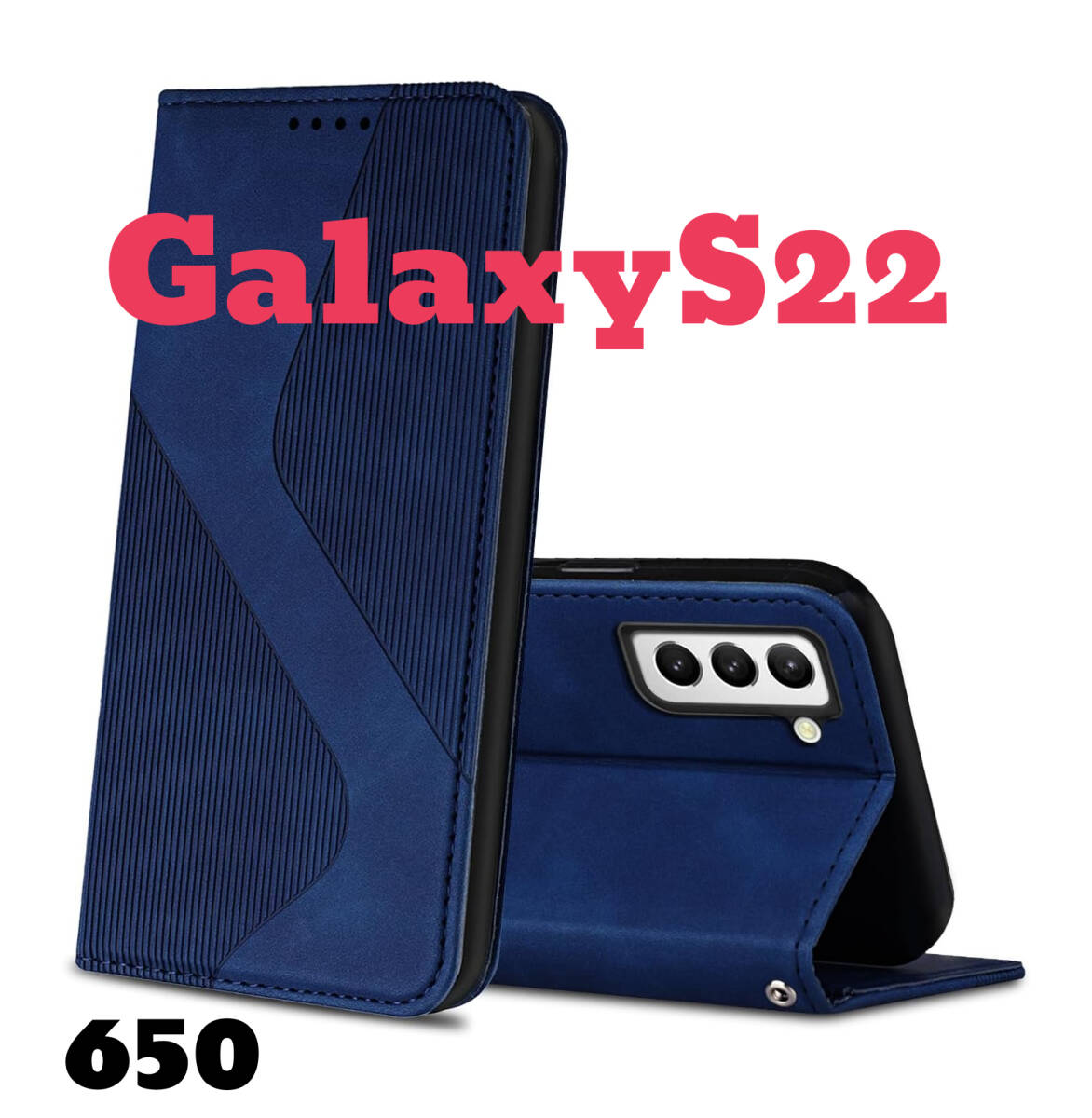 > Galaxy S22 ケース 手帳型 (SC-51C SCG13) スタンド機能 カードポケット収納 耐衝撃 フェイクレザー ブルー ay648