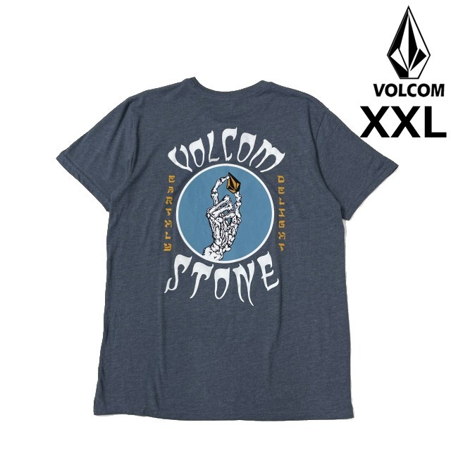> 売切り【正規新品】VOLCOM ボルコム◆半袖 Tシャツ スケート サーフ ストーンロゴ バックプリント 男女兼用 (XXL)青 グレー 250617-B