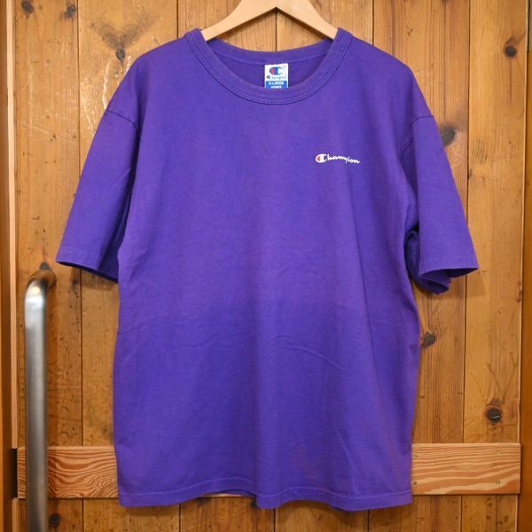 - Champion チャンピオン へビーウェイト Tシャツ USA製 ワンポイントロゴ 90s ビンテージ XL パープル 厚手