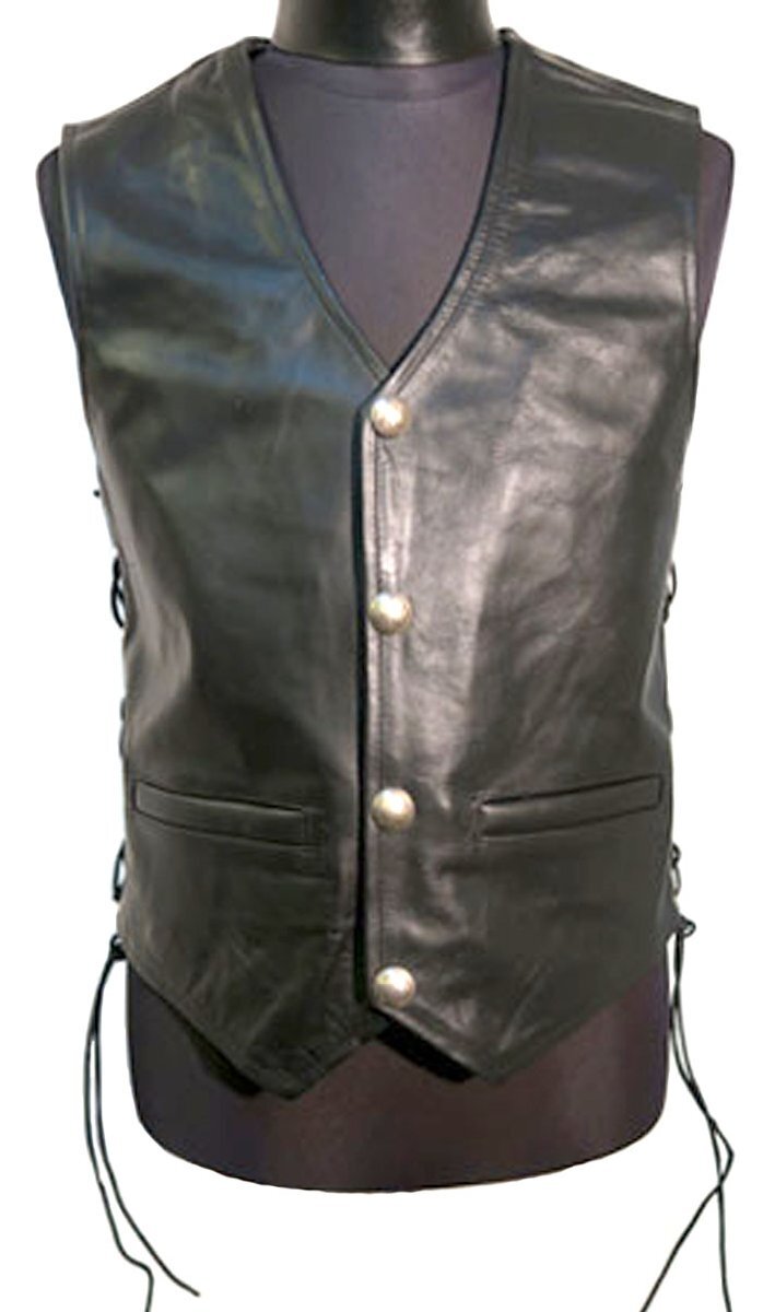 > Mサイズ 本革 ベスト レースアップ インディアンコンチョ 3976 黒 ブラック BLACK 牛革 ウエスタン カウボーイ アメリカン ハーレー