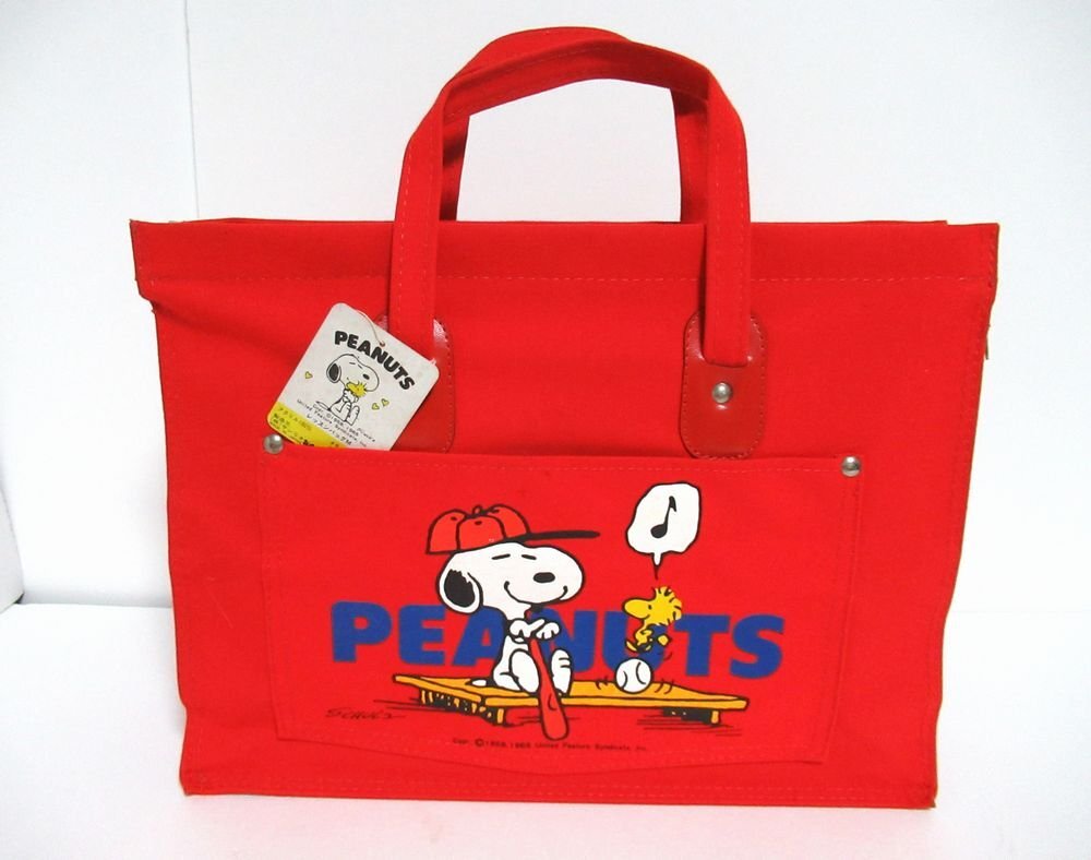 > ♪昭和レトロ/1958年/1965年/ヴィンテージ/日本製/紙タグ付き!SNOOPY(スヌーピー/サンリオ)レッスンバッグ/ファスナー付き/レッド系/希少