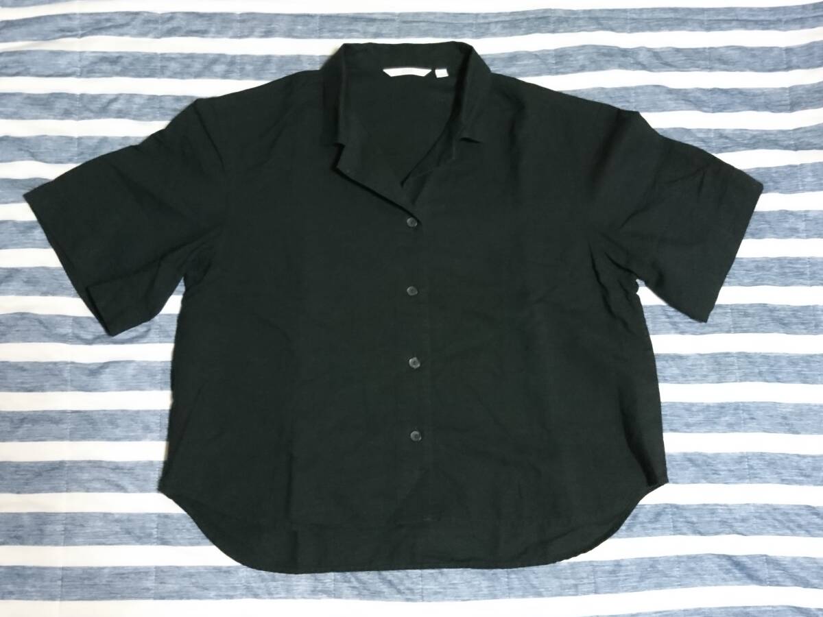 - UNIQLO ユニクロ 半袖 シャツ 麻混 リネン ブラック 黒 クロ Sサイズ レディース