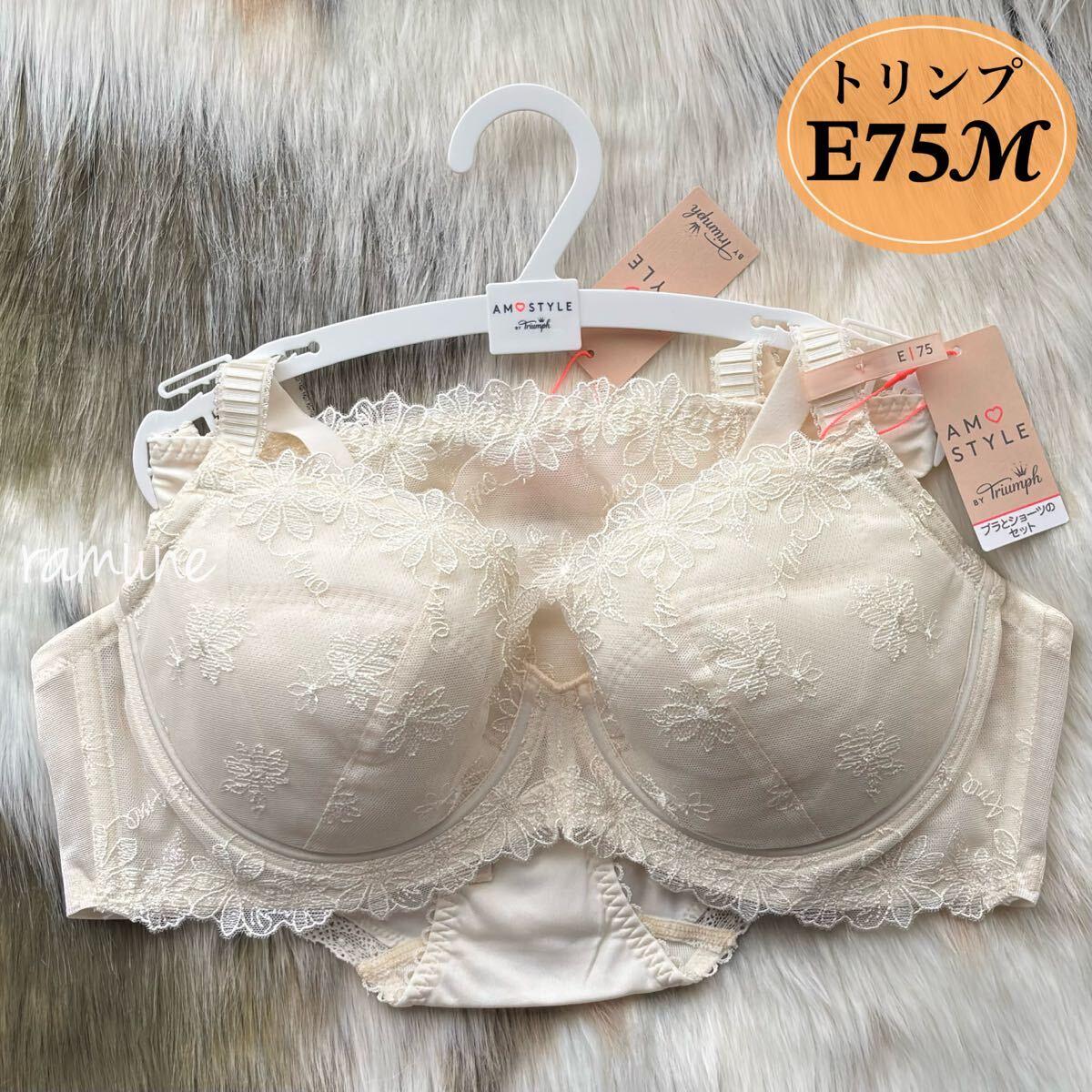 - 【トリンプ*E75M*オフホワイト】新品 Triumph ブラ&ショーツセット チャーミングラマー パッド付き Eカップ 谷間メイク 脇スッキリ