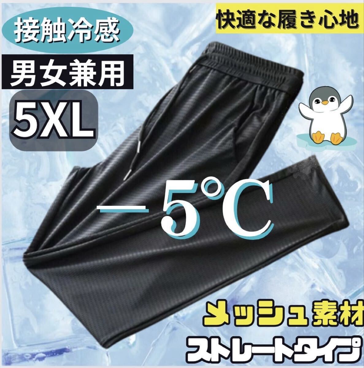 - 5XL メンズ 接触冷感ジョガーパンツ 黒ルームウェアジャージ ズボン ボトムス ブラック 細身 スリム メッシュ 熱中症対策プレゼント