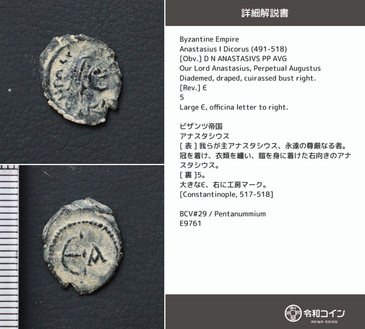 > *[令]アナスタシウス ビザンツ帝国コイン【詳細説明カード付】 ギリシャ,ギリシア,古代ローマ, Byzantine Coin[E9761]7q0