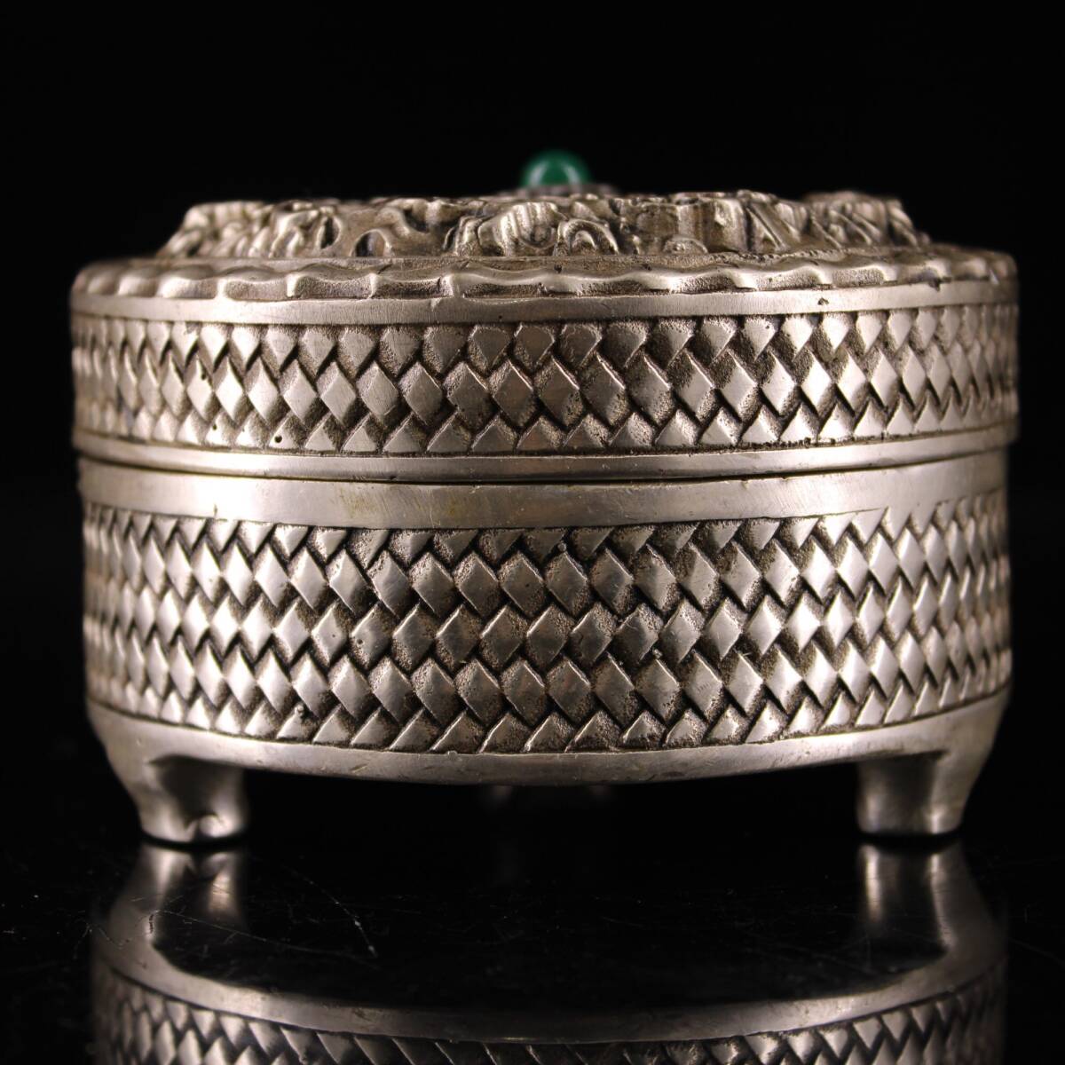 - 『清・銅製・銀鍍・寶石嵌・二龍戲珠紋・熏香炉・仏具・置物・文房賞物』極細工 置物 古賞物 中国古玩 中国古美術