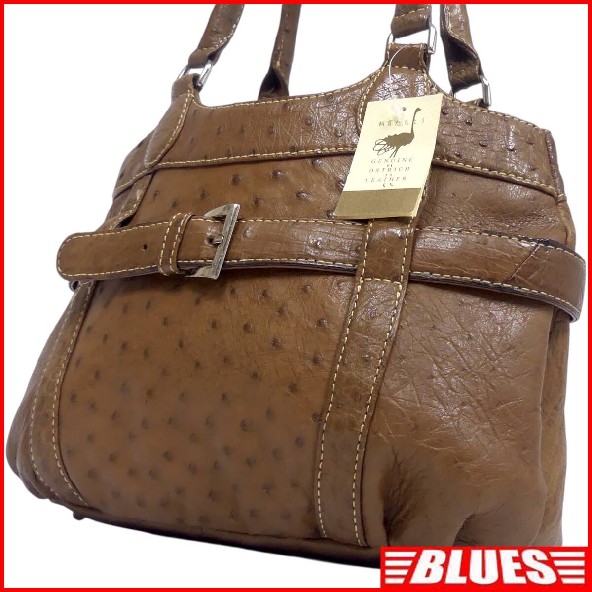 > 即決★OSTRICH★ハンドバッグ オーストリッチ 茶 オールレザー 本革 手提げバッグ 本皮 旅行 カバン 出張 鞄 ダチョウ革 タグ付き