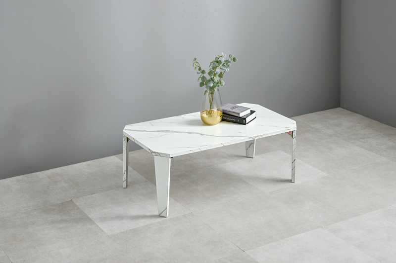 - 折りたたみテーブル ローテーブル 石目柄 マーブル ホワイト色 幅90cm 奥行50cm