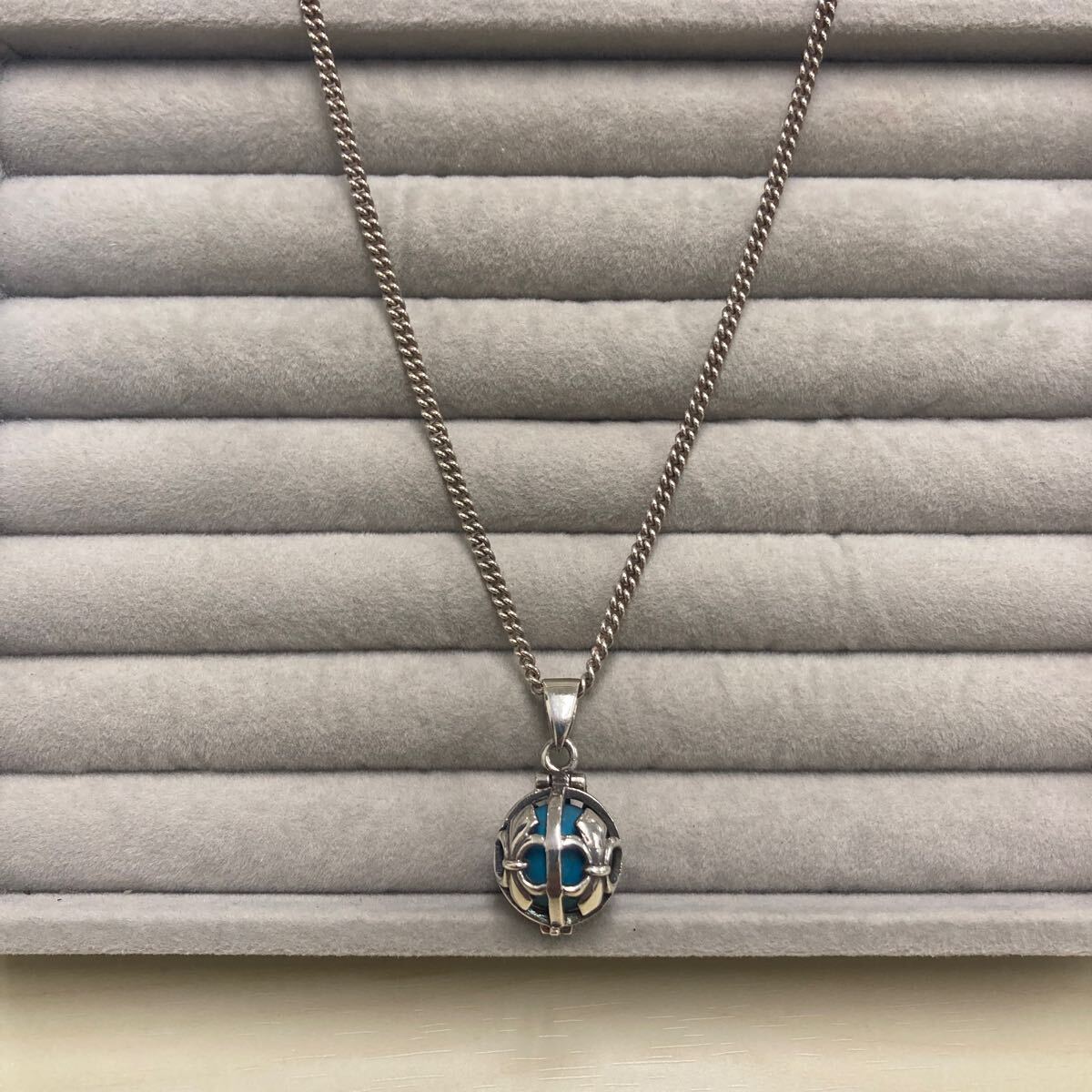 - 925 シルバーネックレス 丸玉トップ 40.5cm 15.0g