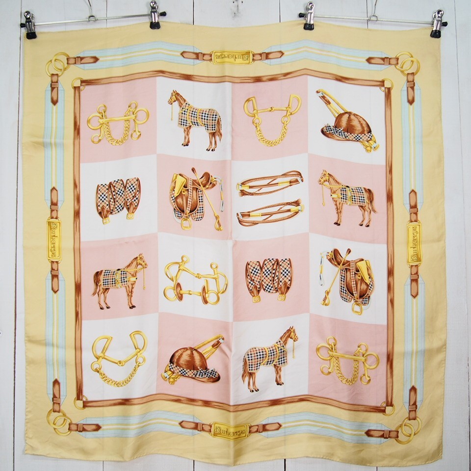 > 90s バーバリー Burberrys ホース 馬具柄 シルクスカーフ クリームイエロー ライトピンク/OLD BURBERRY オールド レトロ