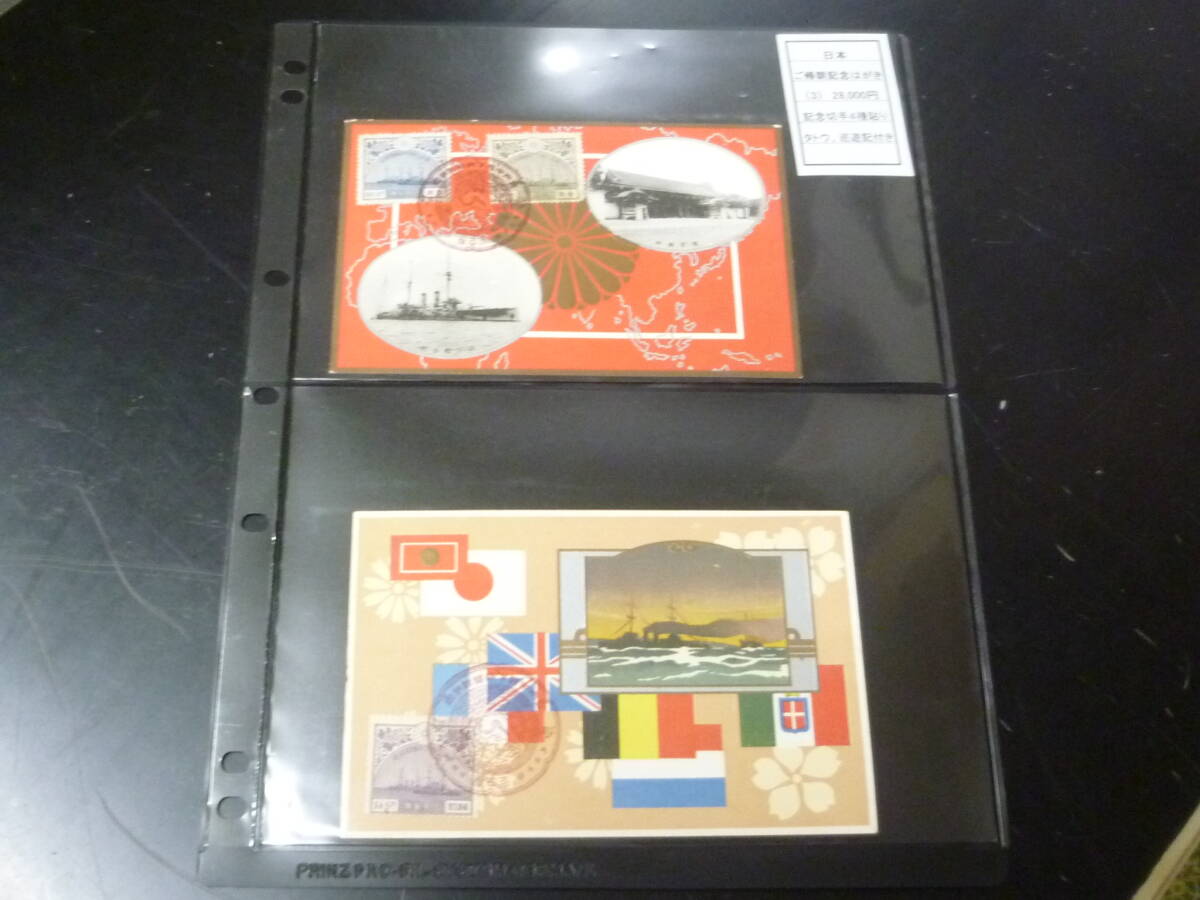 - 【8/21】 №1 日本切手 1921年 ご帰朝記念葉書 「船図案」 初日印付 4種完貼 タトウ付