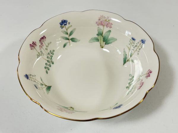 - 8-9 香蘭社 陶器 鉢 ボウル 花柄 21cm ホワイト 中古