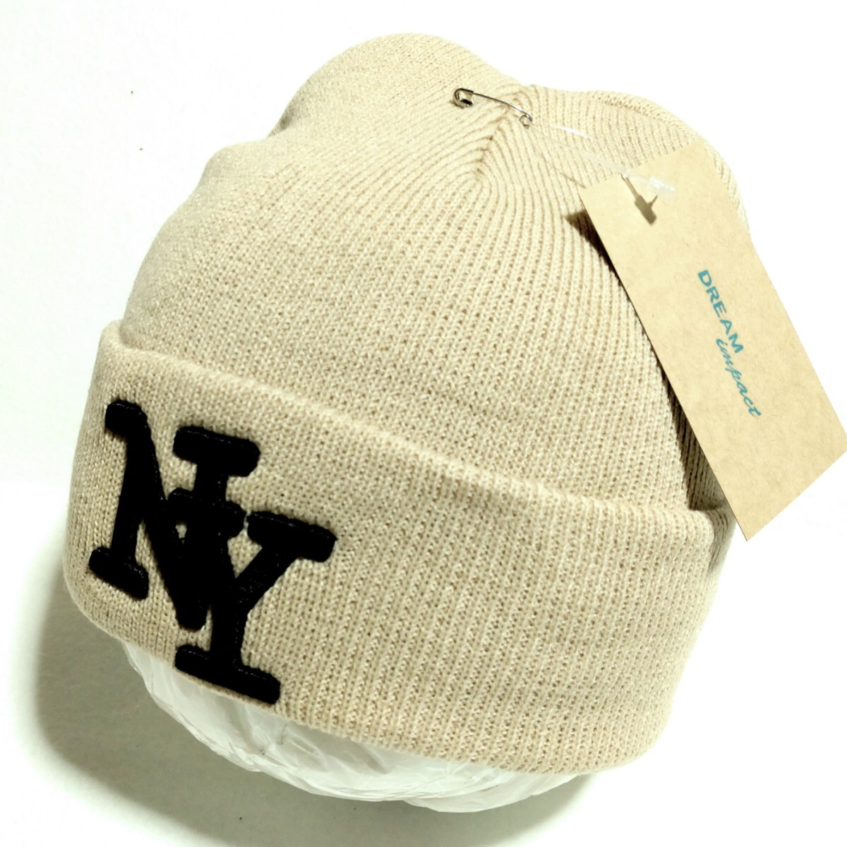 - 特価/未使用【サイズ=アダルトフリー】ノーブランド/NY/男女兼用/ニット/キャップbeige