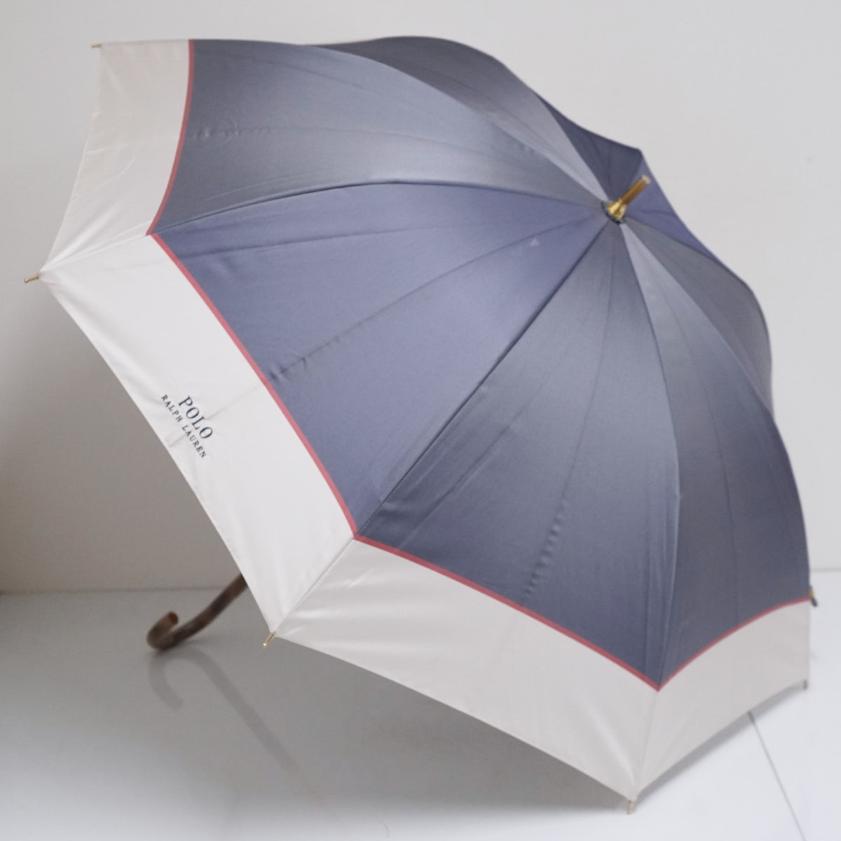 > 傘 POLO RALPH LAUREN ポロ ラルフ ローレン USED品 バイカラー ロゴ刺繍 ブルー×ホワイト グラス骨 軽量 高級 58cm A3094
