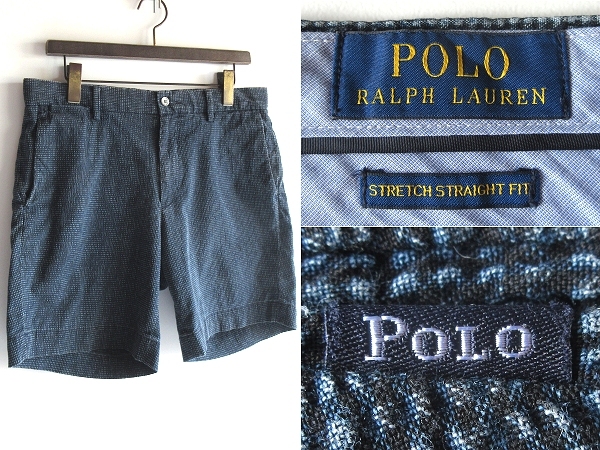 - POLO RALPH LAUREN ラルフローレン ロゴピスネーム コットンナイロン ストレッチシアサッカー インディゴ染め ショートパンツ ショーツ W32