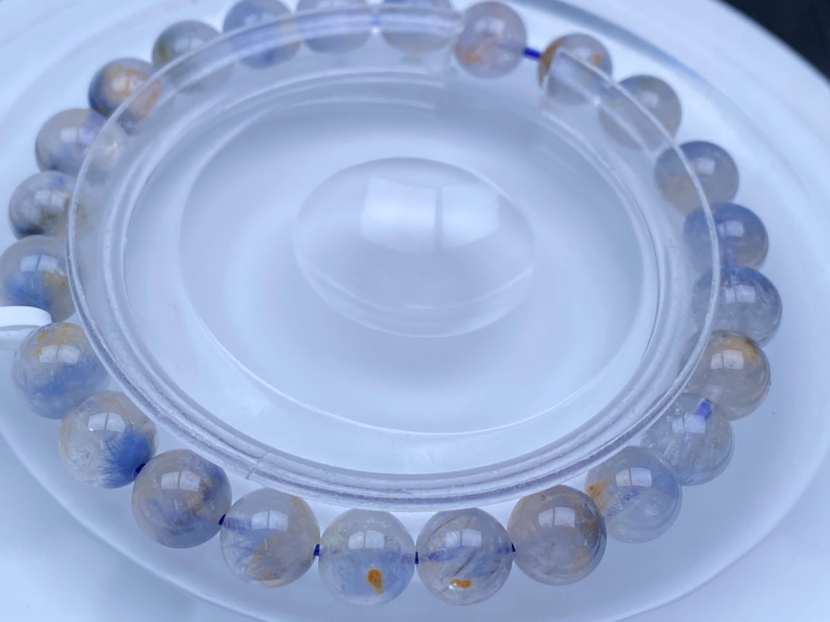 - 即決 0610J503 天然石【65Aガーデンクォーツ&デュモルチェライトインクォーツ共生】 ブレス 7.5-8mm(新品)