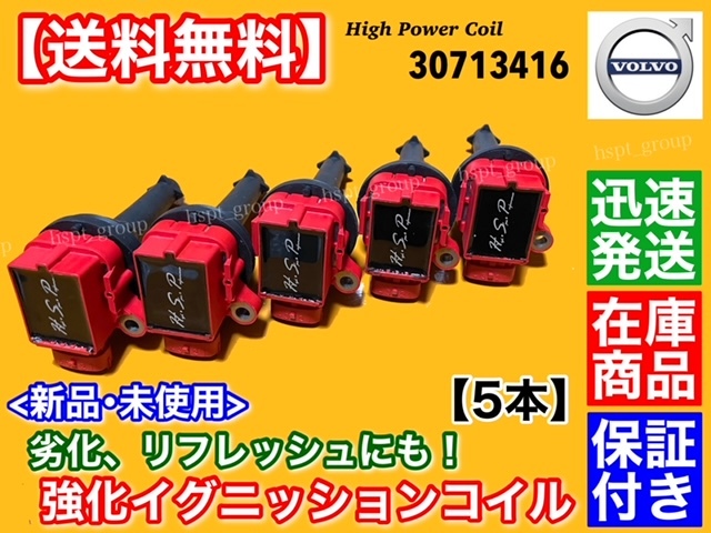 - 在庫【送料無料】ボルボ 新品 強化 イグニッションコイル 5本【30713416 9125601】C70 S40 S60 S70 S80 V40 V70 XC70 XC90 ハイパワー 交換