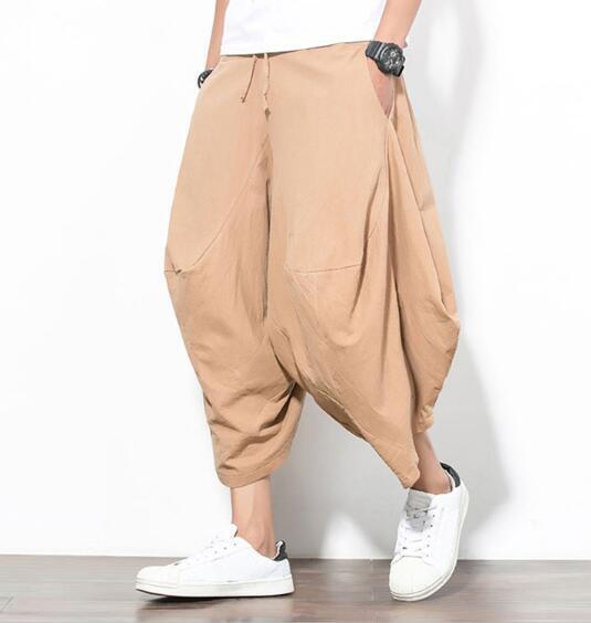 - サルエルパンツ ワイドパンツ メンズ 春夏 無地 大きいサイズ 綿麻 ボトムス カジュアル おしゃれ チノパンツ ゆったり 通気性S`5XL