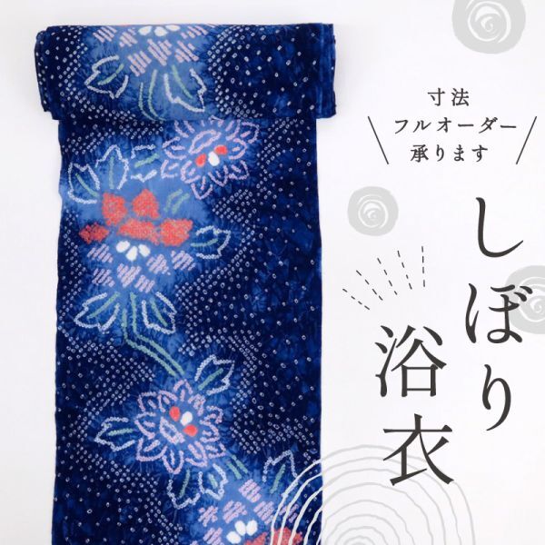 - 【反物】 手しぼり 浴衣 ゆるやか牡丹の花模様 紺色 夏着物 お仕立て可 反25-135