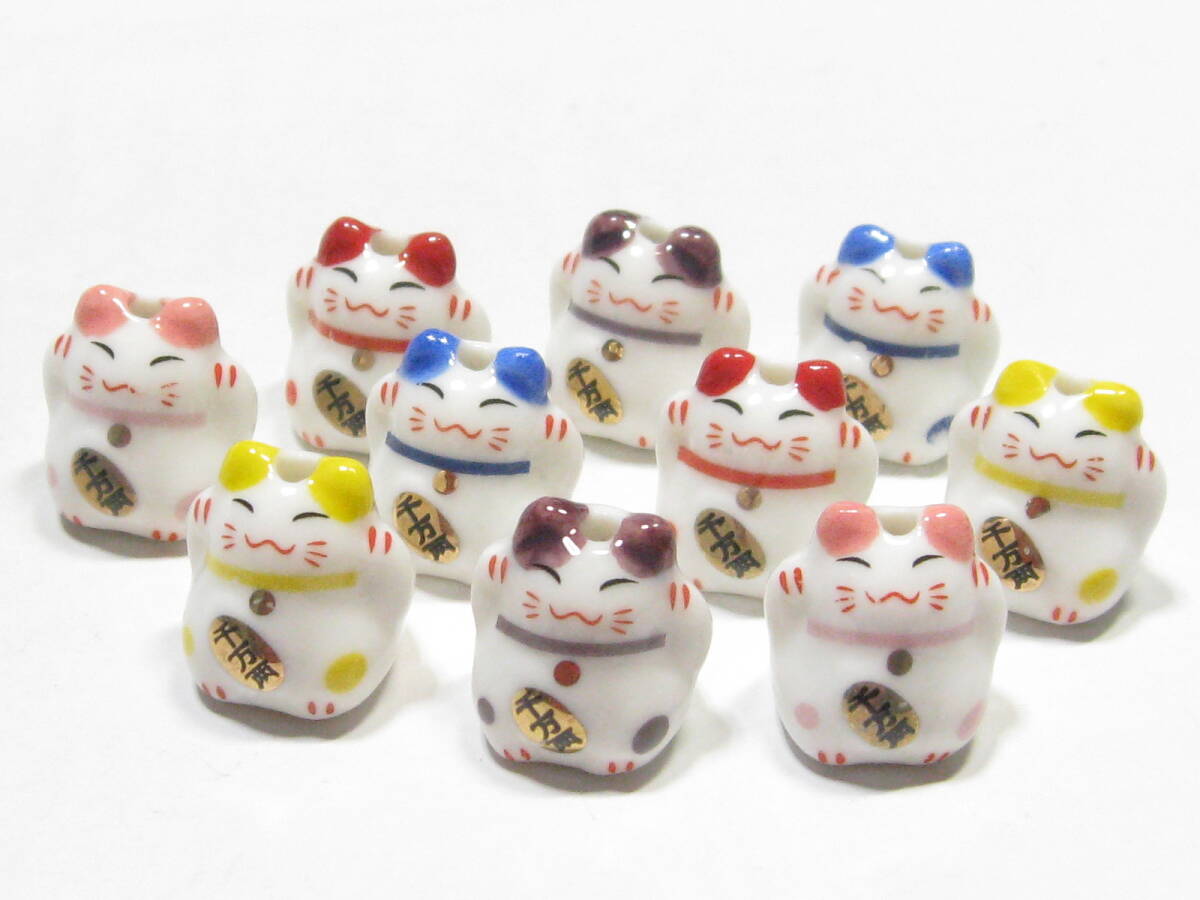 - 招き猫 トンボ玉 縁起良し とんぼ玉 10個セット 5色×2個