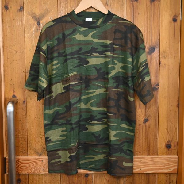 - 【デットストック】アメリカ軍 迷彩Tシャツ ウッドランドカモ 90s ビンテージ M