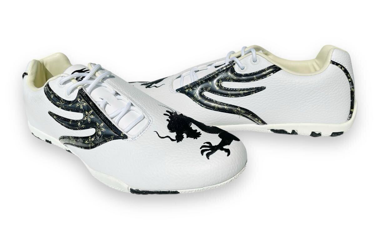 > デッド!! 名作!! DRAGONBEARD ドラゴンベアード レザー スニーカー 龍 刺繍 白 × 黒 us 9.5 / 27.5 ㎝