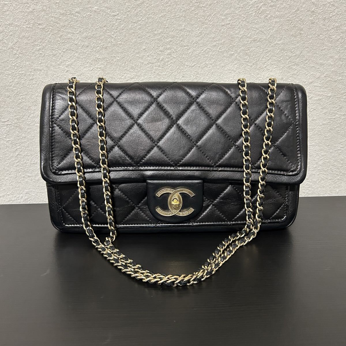 - 美品 19番台 CHANEL シャネル マトラッセ シングルフラップ ショルダーバッグ ブラック レザー