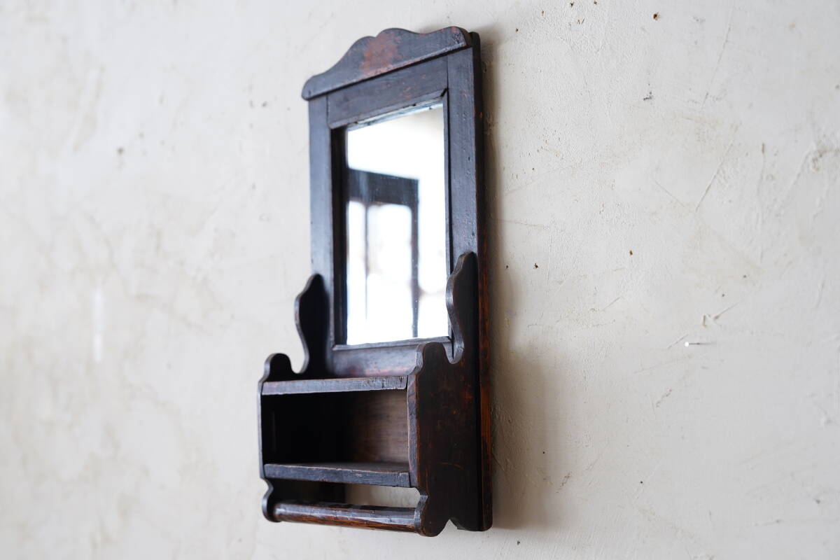 > インド アンティーク 木製 壁掛け ミラー インテリア 小物入れ ディスプレイ 収納 ヴィンテージ 古木 鏡 アンティークミラー ②