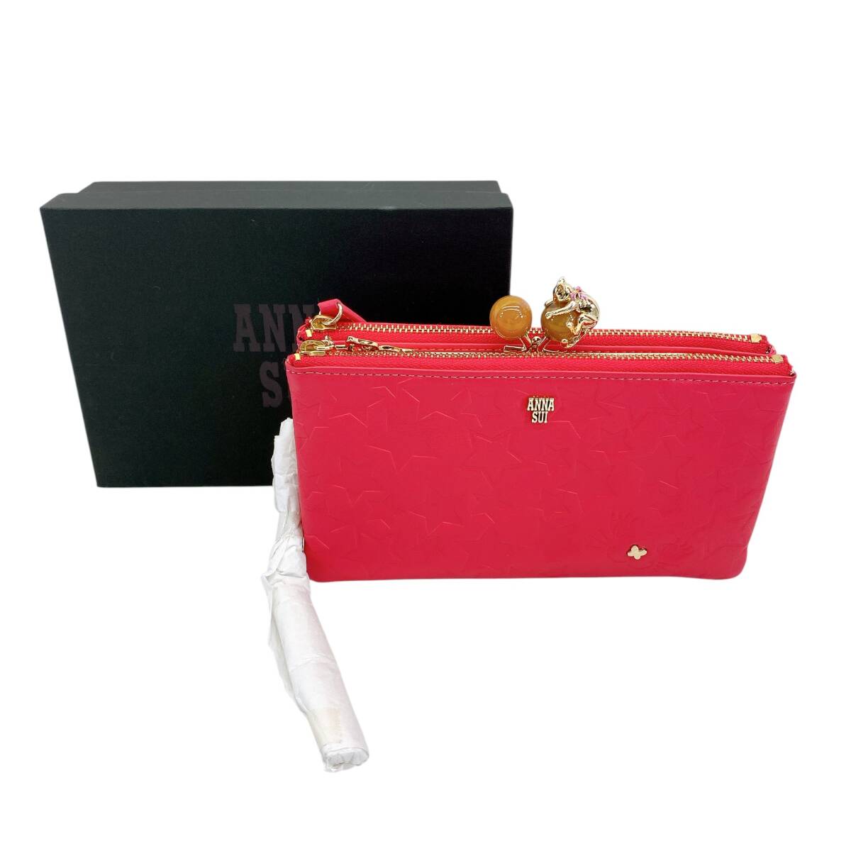 - ★ANNA SUI アナスイ プレイングキャット 猫 星柄 がま口財布 ガマ口 チェーンウォレット ショルダー ピンク 未使用品●