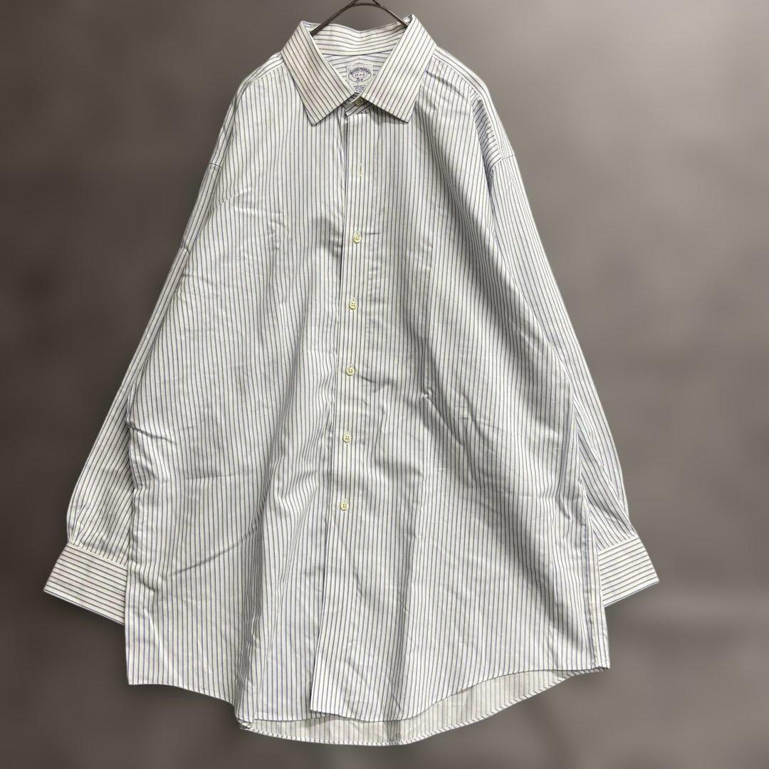 - ブルックスブラザーズ ドレスシャツ 白基調 XL相当 青ストライプ【5352】