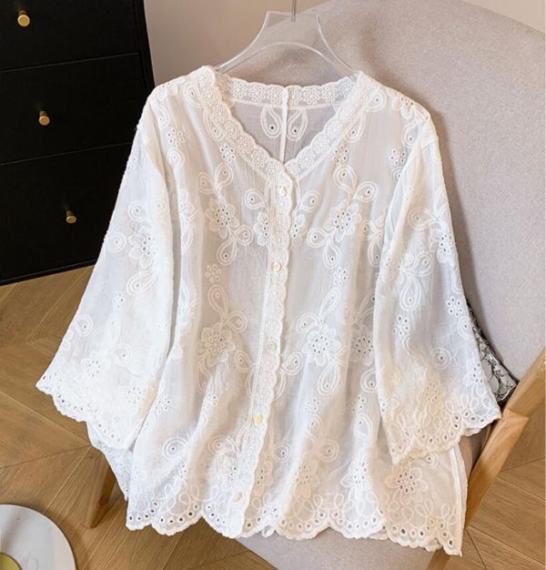 - 人気推薦/上質 刺繍 シャツブラウス レディース トップス 大きいサイズ ゆったり Vネック 綿シャツ 羽織 冷房対策 日焼け カーディガン/白