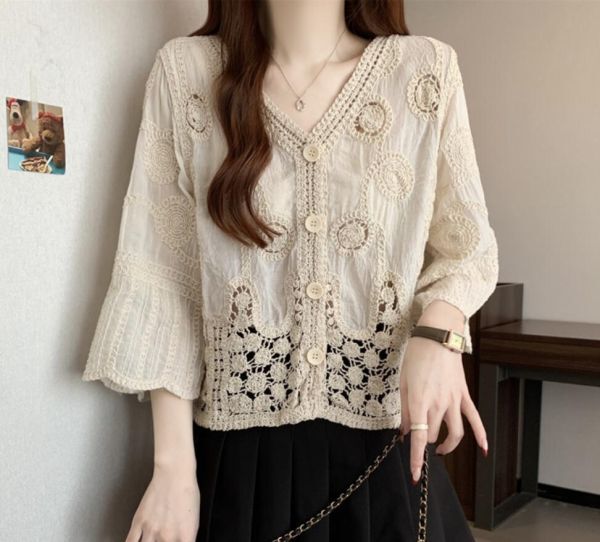 > 人気推薦/上質 刺繍 シャツブラウス レディース トップス 大きいサイズ ゆったり レース シャツ 羽織 薄手 冷房対策 日焼け カーディガン /