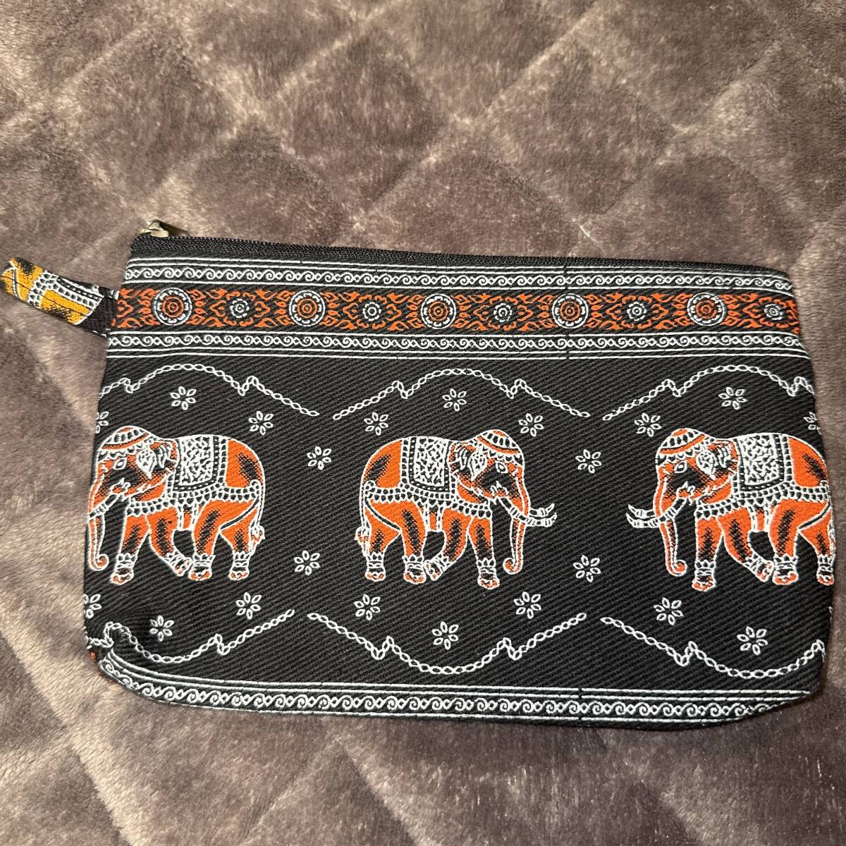 - 【未使用品】 象柄 ポーチ タイ アジアン ブラック ゾウ コスメポーチ 化粧ポーチ アクセサリーポーチ 小物入れ