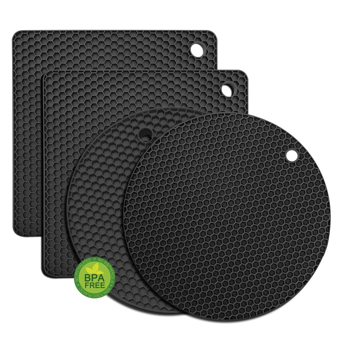 - ダイニングテーブル保護 滑り止め やけど防止 (四角2枚+円2枚)耐熱 多機能 4枚セット 簡単な洗浄 シリコン サスペンション収