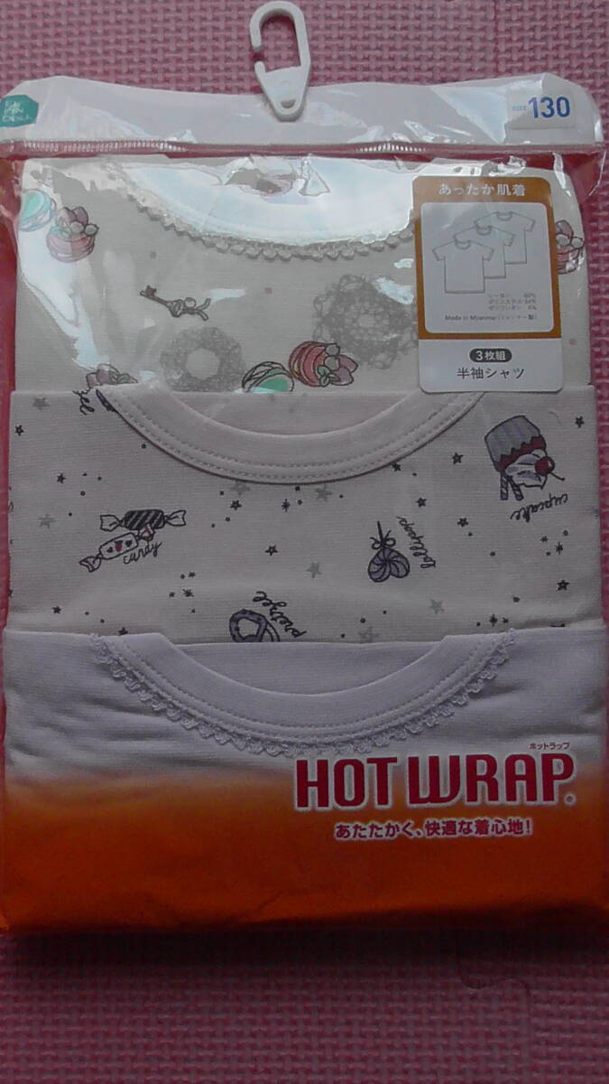 - 新品 130 3枚組 半袖シャツ スイーツ柄 お菓子柄 2枚組よりお得 3枚セット 女の子 あったか肌着 下着 秋物 冬物 西松屋 120~ 送料無料