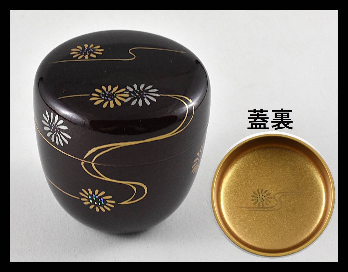 - ▲楠廸庵▲溜塗流水に菊蒔絵中棗(内梨子地) 東雲作 樹脂製 茶道具