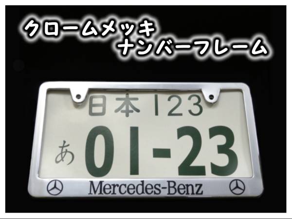 - ★クロームメッキナンバーフレーム メルセデスベンツロゴ 2枚★