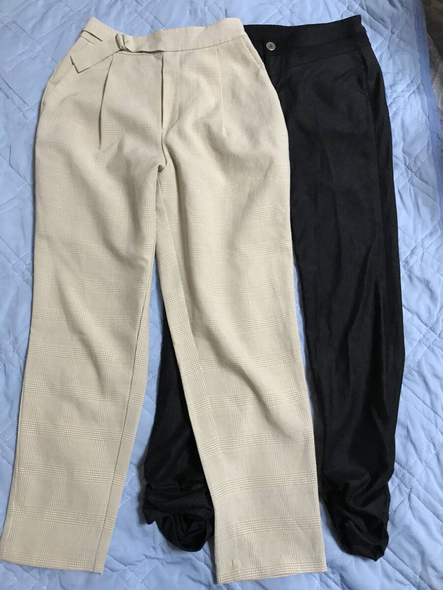 - 黒色とベージュ系ェック柄のパンツ 2点セット 黒9 ベージュ b92