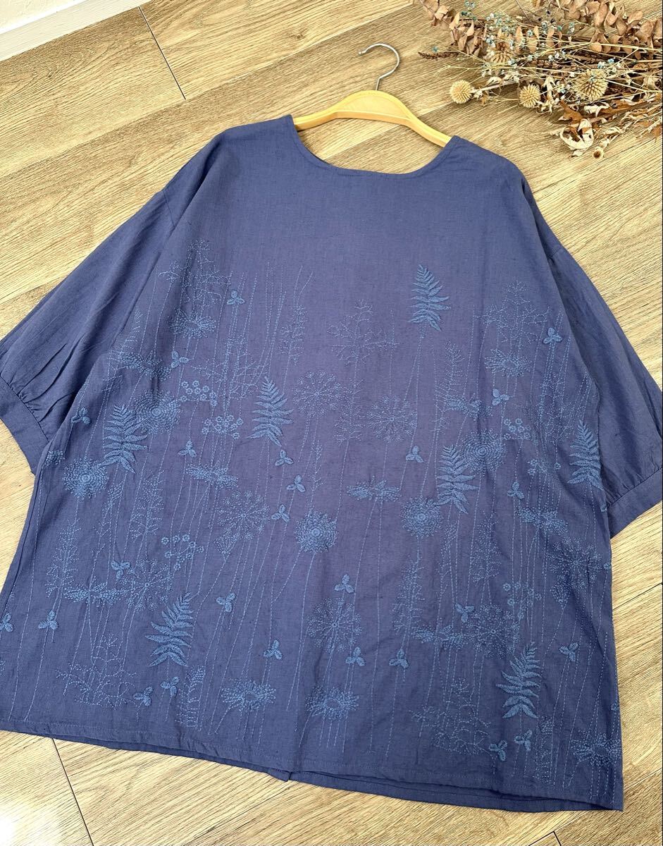 - タグ付き 新品 2WAY ボタニカル刺繍 綿麻生地 プルオーバー Made in India インド製 M.M.O