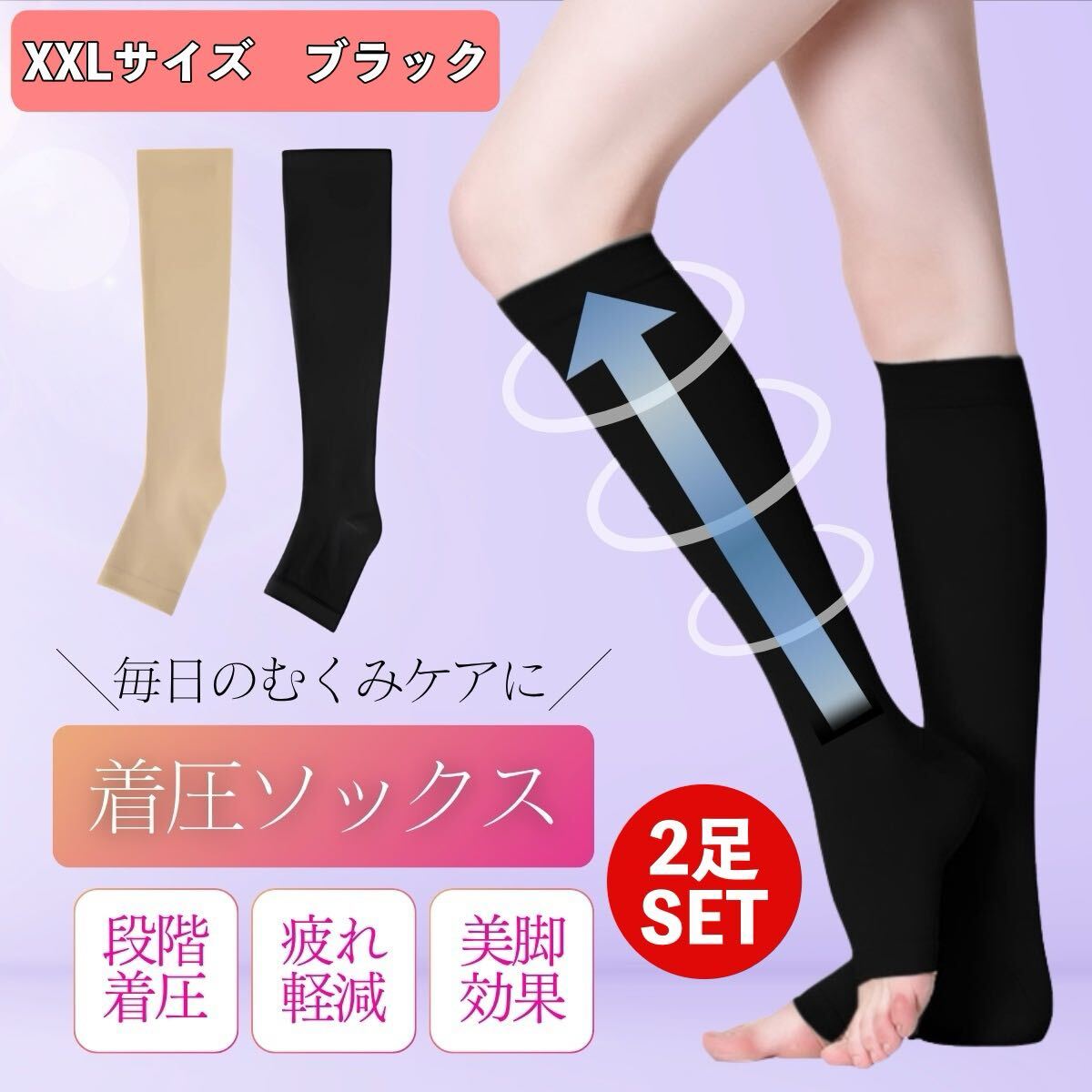 - 着圧ソックス 弾性ストッキング ふくらはぎサポーター加圧 寝るとき むくみ 靴下 メンズ レディース 2足 セット