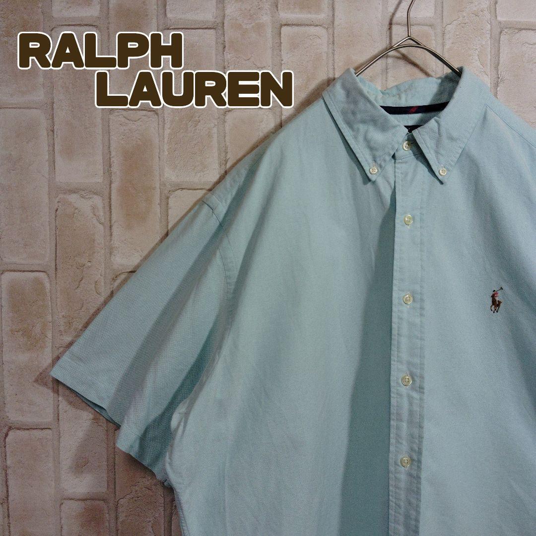 - ラルフローレン シャツ 半袖 水色 刺繍 ロゴ
