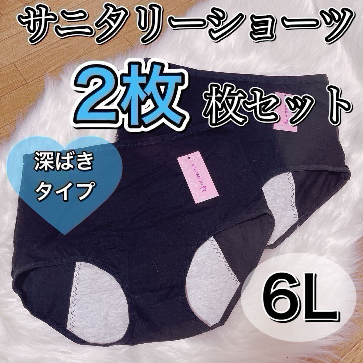 > サニタリー ショーツ 2枚セット ブラック 黒 生理用パンツ 6L 5XL 産褥ショーツ 大きいサイズ 深ばき 下着 生理 パンツ ハイウエスト