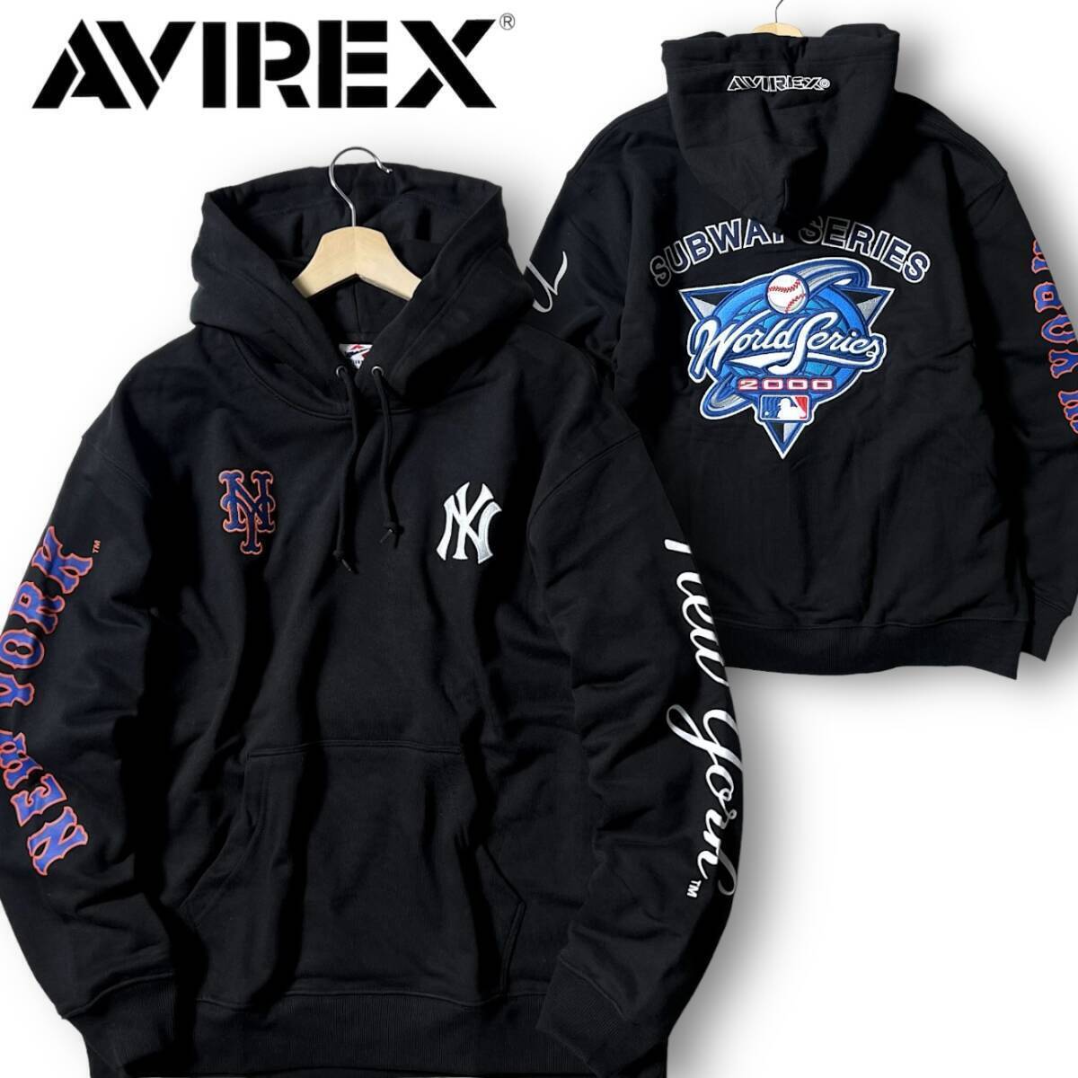 - 新品 AVIREX × MLB アヴィレックス 定価1.5万 刺繍×ワッペン スウェット パーカー プルオーバー 3231011 L ヤンキース×メッツ ◆B8255