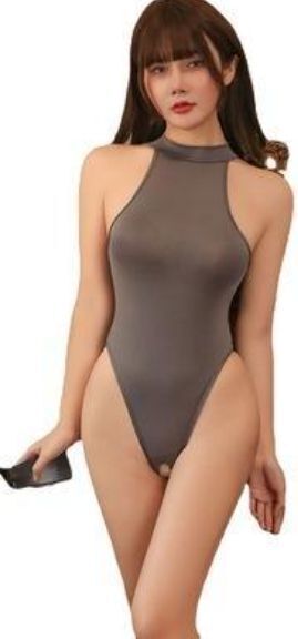 - ホルターネックハイレグレオタードオープンクロッチシルバーグレー