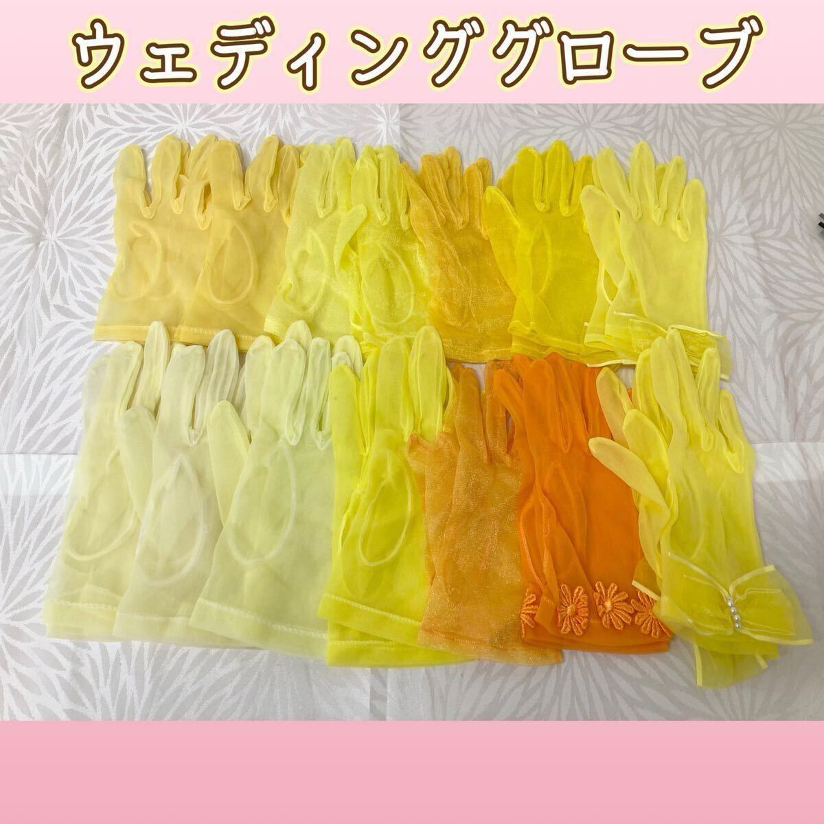 - 堀-53》ウェディンググローブ ショート まとめ売り 14点 カラードレス 黄色 オレンジ ドレス 手袋 グローブ 挙式 パーティー (230418 9-2)