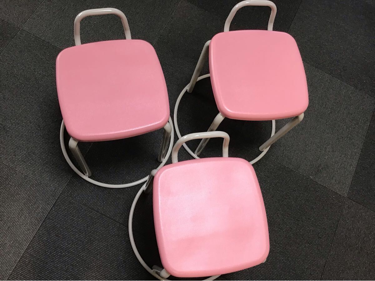 - ★美品★ 内田洋行 スタッキング US-842N 丸イス 3脚 ピンク 取っ手付 角座椅子 スツール 教育 学校 樹脂
