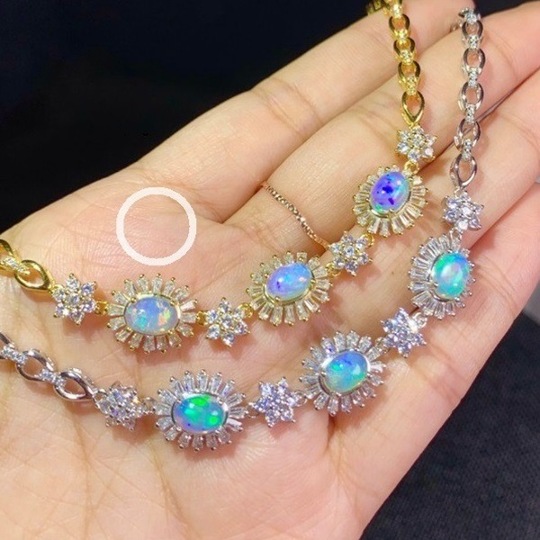 > 天然オパール925シルバーブレスレット、5x7mm、鑑別付き、残り時間4日までに最初に入札すると開始価格で購入可能 Yu