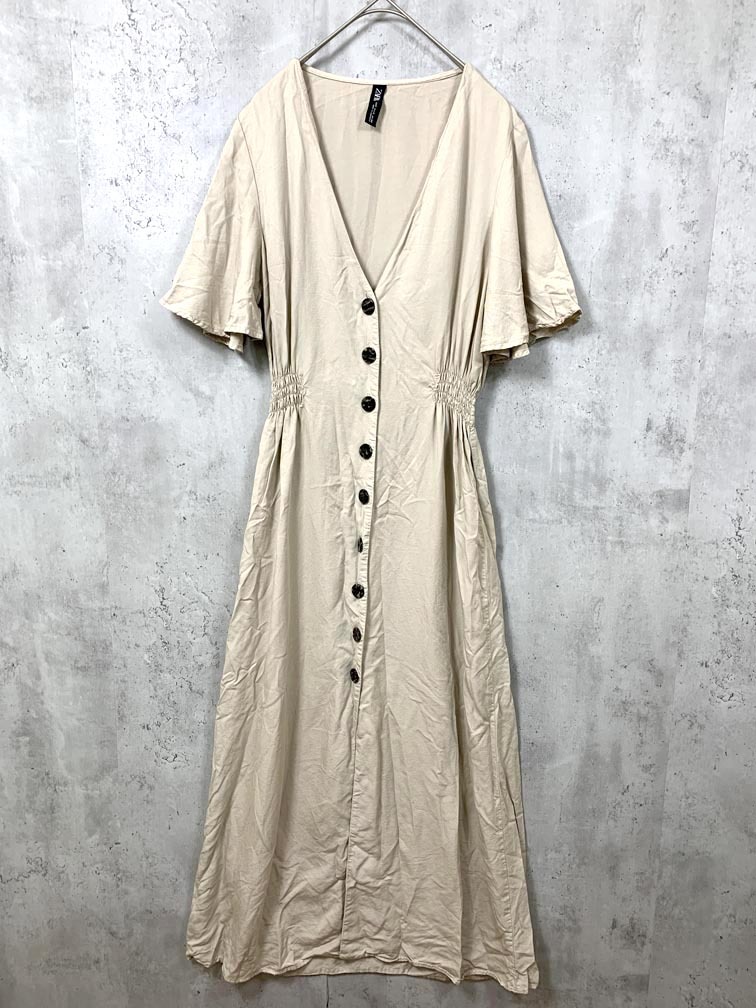 - ゆうパケットOK ZARA ザラ 2674/346/711 フロントボタン フレアスリーブ ワンピース sizeS/ベージュ ■◆