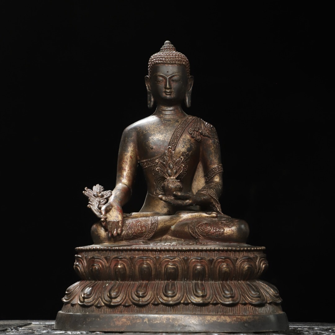 - 『館蔵珍品 銅製 泥金 藥師仏 仏像 宗教 仏教古美術 供養品』稀少珍蔵品 古賞物 貴重物品 収蔵品 中国古美術 時代物 古董品